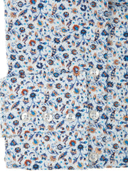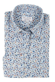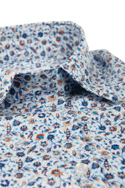 Aansluitende bloes in blauw bruine bloemenprint